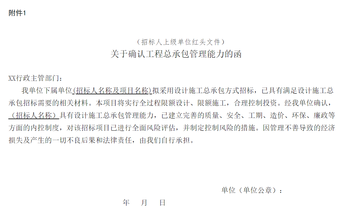 附件:1.关于确认工程总承包管理能力的函