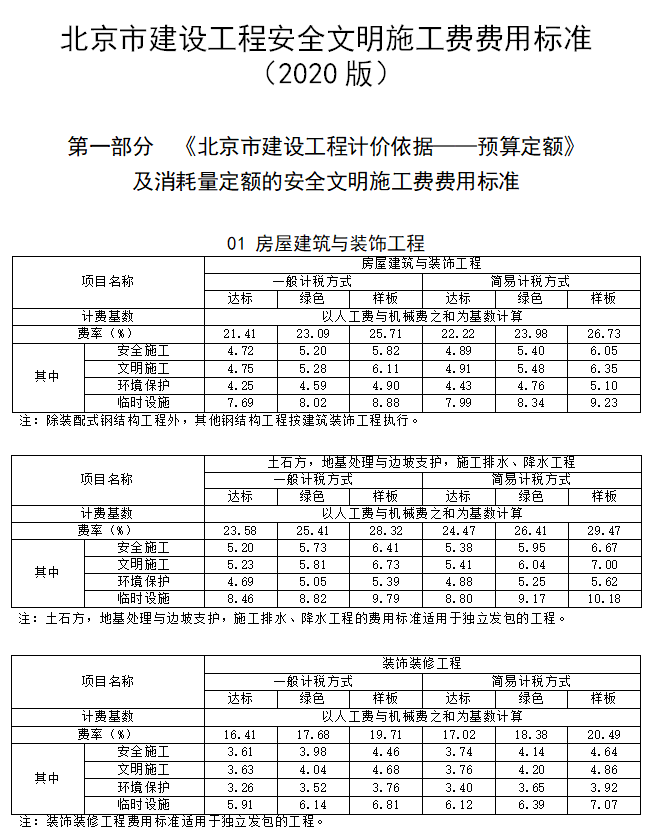 附件:北京市建设工程安全文明施工费费用标准(2020版).doc