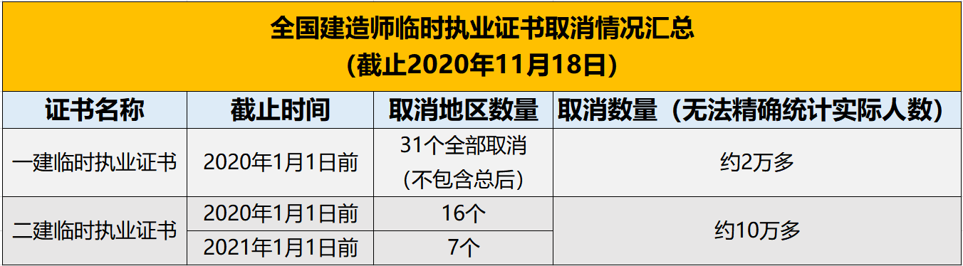 自去年7月住建部发布通知以来,全国一级建造师临时执业证书已全面取消。