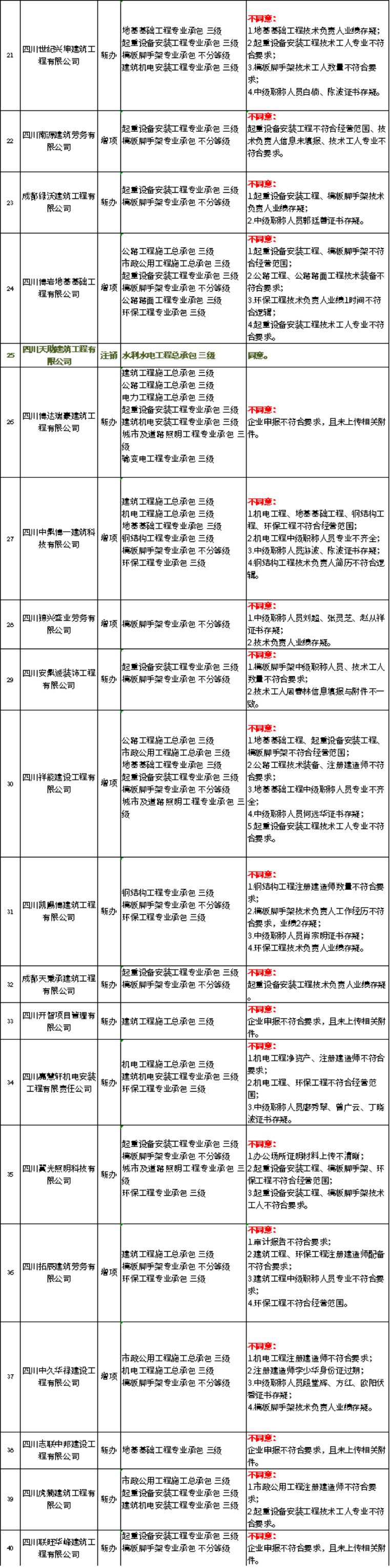 近日,成都市住房和城乡建设局发布《关于四川省一体化政务服务平台建筑业企业资质行政许可审查意见的公示》。