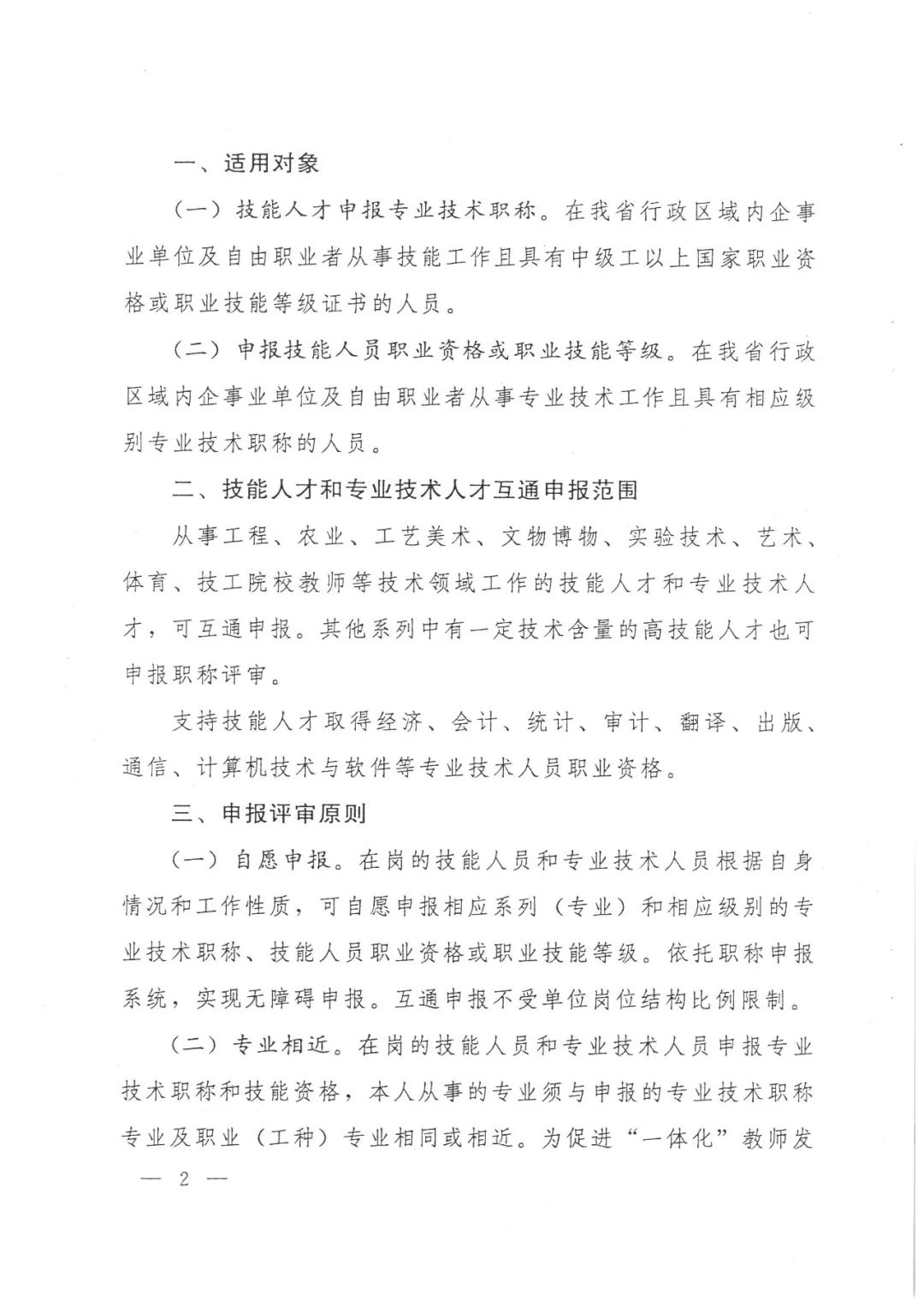 《通知》称,我省从事工程、农业、工艺美术、文物博物、实验技术、艺术、体育、技工院校教师等领域工作的技能人才和专业技术人才,均可在职称上可互通申报。其他系列中有一定技术含量的高技能人才也可申报职称评审。