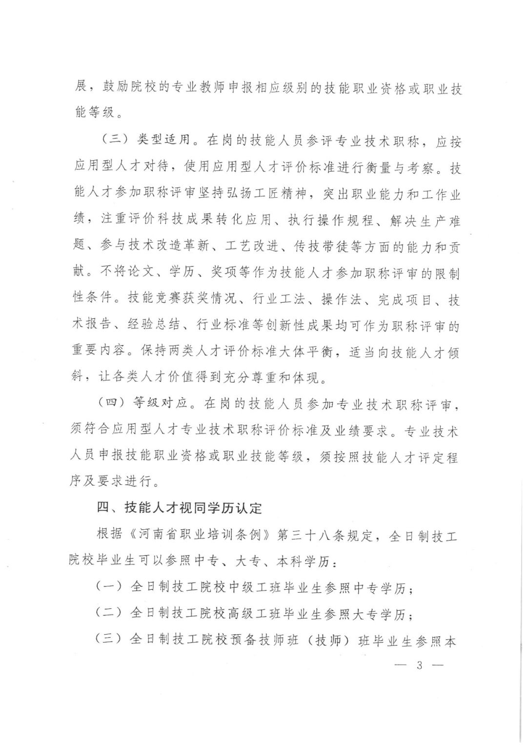 根据《河南省职业培训条例》第三十八条规定,全日制技工院校毕业生可以参照中专、大专、本科学历;