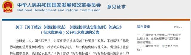 关于《关于修改〈招标投标法〉〈招标投标法实施条例〉的决定》(征求意见稿)公开征求意见的公告