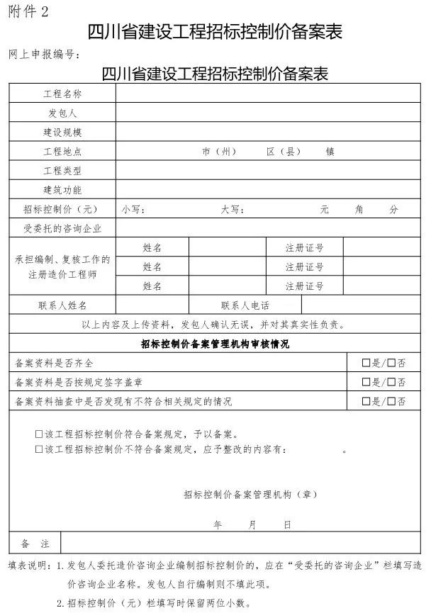 2.四川省建设工程招标控制价备案表