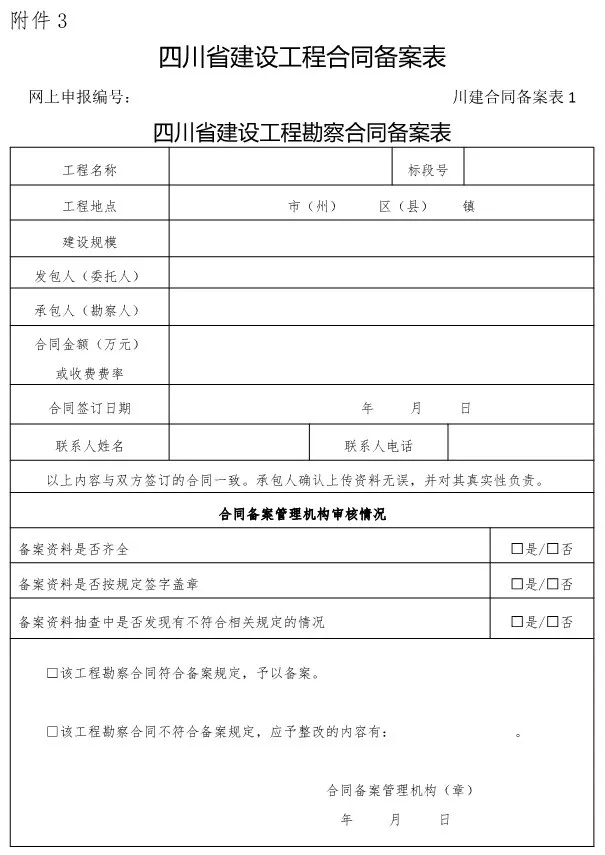 3.四川省建设工程合同备案表