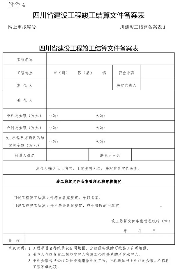 4.四川省建设工程竣工结算文件备案表