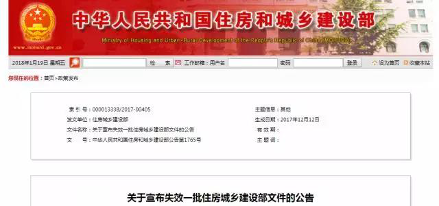 今日,住建部官网发布《关于宣布失效一批住房城乡建设部文件的公告》。