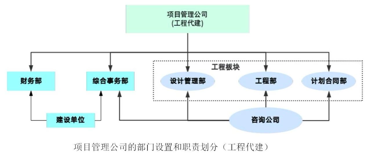 在这种模式下,以咨询公司为主,建设单位为辅一起组建项目公司(或项目部),大部分的专业技术人员由咨询公司提供并组建各职能部门,建设单位仅安排少数人员在关键岗位任职。