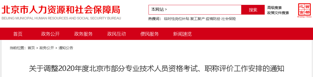 为贯彻落实“放管服”改革要求,进一步减少人才重复评价,降低疫情防控期间人员聚集风险,保障全市职称评价工作顺利进行,在《关于开展2020年度北京市职称评价工作的通知》(京人社事业字〔2020〕1号)安排基础上,决定对2020年度本市部分专业技术人员资格考试、职称评价工作进行调整,具体事项通知如下: