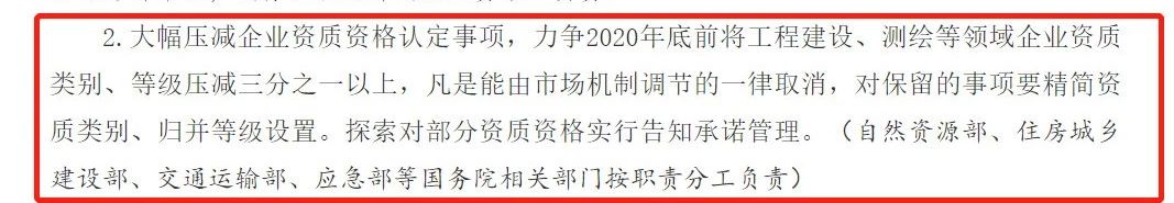 注:虽然是旧闻,但是还是有必要再发一遍,注意这个时间节点,2020年底前将工程建设、测绘等领域企业资质类别、等级压减三分之一以上。