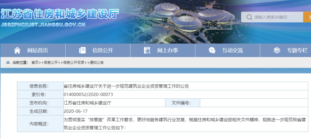 江苏省住建厅发布《关于进一步规范建筑业企业资质管理工作的公告》,明确了多个重要事项: