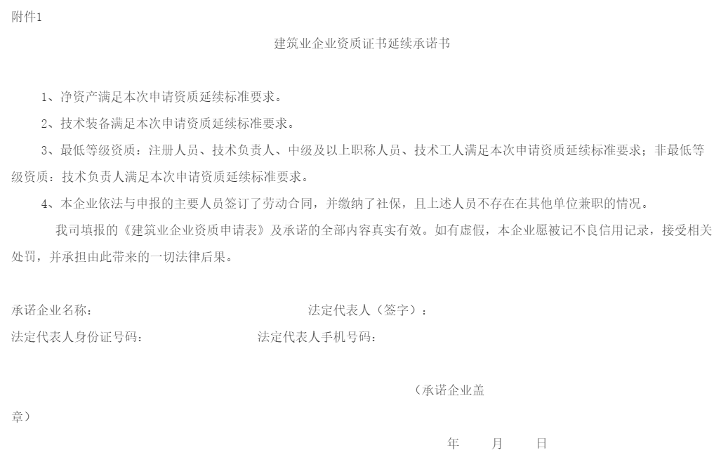 附件:1.建筑业企业资质证书延续承诺书