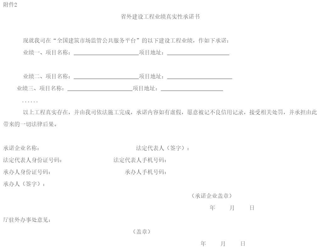 2.省外建设工程业绩真实性承诺书
