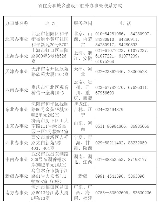 3.省住房和城乡建设厅驻外办事处联系方式